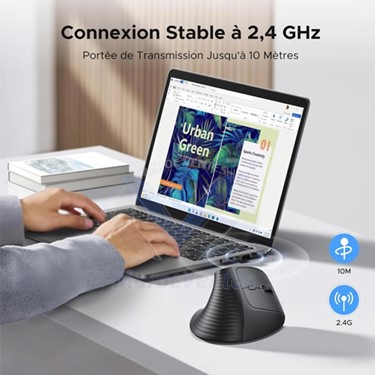 CONFORT EXCEPTIONNEL La conception ergonomique de cette souris verticale assure un angle naturel de 57° entre votre bras et votre poignet, prévenant ainsi la fatigue. C'est pourquoi elle est idéale pour les internautes et les utilisateurs d'ordinateurs travaillant de longues heures.CONTRÔLE PRÉCIS Cette souris sans fil 2,4 GHz dispose de 4 niveaux de DPI (1000/1600/2000/4000). Vous pouvez choisir le DPI adapté à votre utilisation ou à la résolution de votre écran pour un contrôle optimal.LIBERTÉ SANS FIL La souris verticale UGREEN offre une portée maximale de 10 m, vous libérant ainsi des contraintes des câbles.Large compatibilité : via la bande 2,4 GHz, vous pouvez vous connecter aux appareils Windows (7/8.1/10/11), macOS (10.15 et versions ultérieures), iOS (13.4 et versions ultérieures), iPadOS (14.0 et versions ultérieures), Android (5.0 et versions ultérieures), Chrome OS ou Linux.Conçu pour le confort : ce produit mesure 119,8 x 85,8 x 73 mm (longueur x largeur x hauteur) et pèse 105 g, idéal pour les grandes mains de 17 cm et plus.Remarque : En mode Mac, le bouton latéral avant permet de passer à l’application suivante (Commande + ]) et le bouton latéral arrière permet de revenir à l’application précédente (Commande + [).Adoptez une nouvelle posture de travail et libérez-vous des douleurs au poignet. La souris sans fil Ugreen Vertical M571 Ergonomique 2.4GHz est conçue pour offrir un confort optimal grâce à son angle naturel de 57°, réduisant la fatigue lors d’une utilisation prolongée. Idéale pour le bureau ou le télétravail, elle propose 4 niveaux de DPI réglables jusqu’à 4000 DPI pour un contrôle précis et fluide. Sa connexion sans fil 2.4GHz assure une portée stable jusqu’à 10 mètres, compatible Windows, macOS, Android et plus. Performante, ergonomique et pensée pour les grandes mains, elle améliore votre productivité avec efficacité et libertéCaractéristiques Techniques