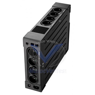 Connectivité Quantité des sorties 8 Types de sortie AC Type E (FR) Prise mâle C14 coupler Ports (RJ11) du modem 1 Quantité de Ports USB 2.0 1 Nombre de port ethernet LAN (RJ-45) 1 Batterie Technologie batterie Sealed Lead Acid (VRLA) Temps de secours type à demi de charge 9 min Démarrage à froid