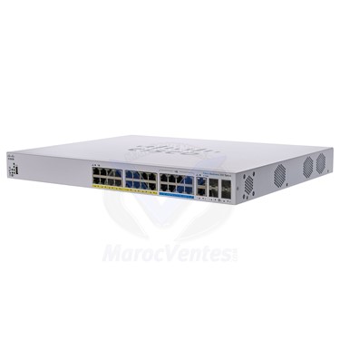 Le switch Cisco CBS350-24NGP-4X propose 16 ports Ethernet Gigabit 10/100/1000 Mbps compatibles PoE+, 8 Ports Ethernet 5 Gigabits 100M/1G/2.5G/5G compatibles PoE++ (60W) pour un budget de 375 Watts et 4 liaisons montantes 10 Gbps (2 SFP+ dédiés + 2 ports combo 10GbE cuivre / SFP+).CBS350 : Switch administrable de niveau 3