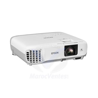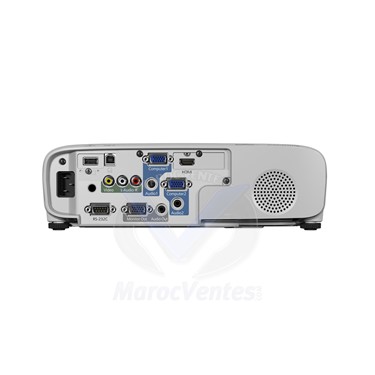 1 x HDMI - HDMI de 19 broches de type ADIVERSAccessoires inclus Télécommande sans fil Câbles inclus 1 x câble VGA Fonctionnalités de sécurité Fente de verrouillage de sécurité (câble de verrouillage vendu séparément), protection par mot de passe, Verrouillage Lan sans fil ALIMENTATIONSource d'alimentation Secteur Tension nomimale CA 120/230 V (50 - 60 Hz) Consommation en fonctionnement 309 Watt Consommation électrique en mode d'attente 0.2 Watt LOGICIELS / CONFIGURATION REQUISELogiciel(s) inclus EasyMP Network Projection, EasyMP Multi PC Projection DIMENSIONS ET POIDSLargeur 30.2 cm Profondeur 24.9 cm Hauteur 9.2 cm Poids 2.7 kg GARANTIE DU FABRICANTService et maintenance Garantie limitée - 2 ans - retour atelier