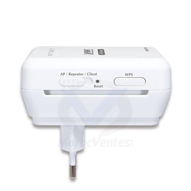 * Appuyez sur environ 3 à 6 secondes pour rétablir les paramètres d'usine par défautIndicateurs LED PWR, WPS, Ethernet, WLAN Matériel Plastique Dimensions (L x P x H) 55 x 75 x 40 mm Poids 80g (poids brut) Alimentation requise 100 ~ 240VAC Type de connecteur UE / USA Consommation d'énergie Etat: 2.1W Etat