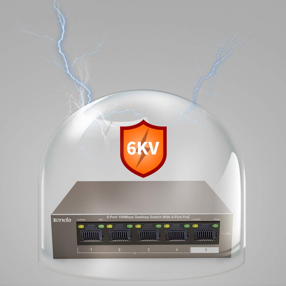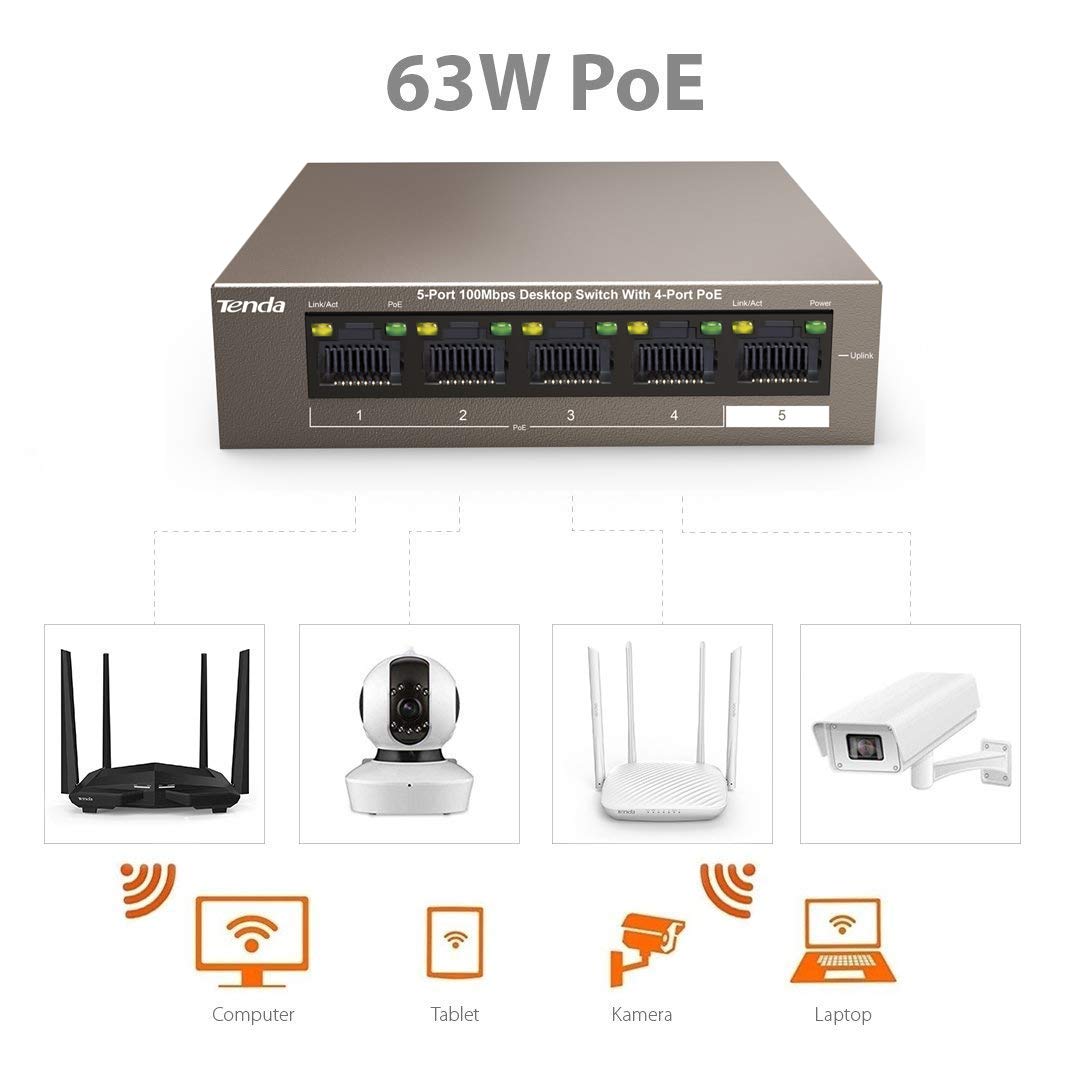 Tenda TEF1105P-4-63W - Switch 5-Port 10/100Mbps With 4-Port PoE non géré